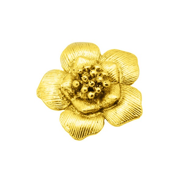 Smuk Guld blomster knap med stene 18 /... Vis her Tilføj til ønskeliste Tilføj til sammenligning Pris 18,00 kr. Læg i kurv Smuk guld blomster knap med masser af stene, knappen er i metal men nikkefri, med guld belægning, den måler 18 mm med 2,7 mm hul. En super flot knap perfekt størrelse til armbånd som lukning.