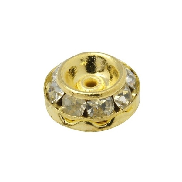Guld rondel 8 mm - klare stene - 2 stk Vis her Tilføj til ønskeliste Tilføj til sammenligning Pris 8,00 kr. Læg i kurv Flot guld rondel med klare stene, rondellen er 8 x 3,8 mm med 1,5 mm hul, du får 2 stk.